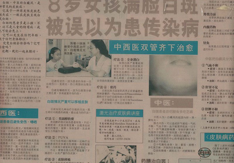 White patches on the skin, known in Traditional Chinese Medicine (TCM) as Vitiligo (白癜风), is a common skin condition characterized by localized loss of pigment, forming white patches. It is frequently seen in children but can occur at any age and on any part of the body.