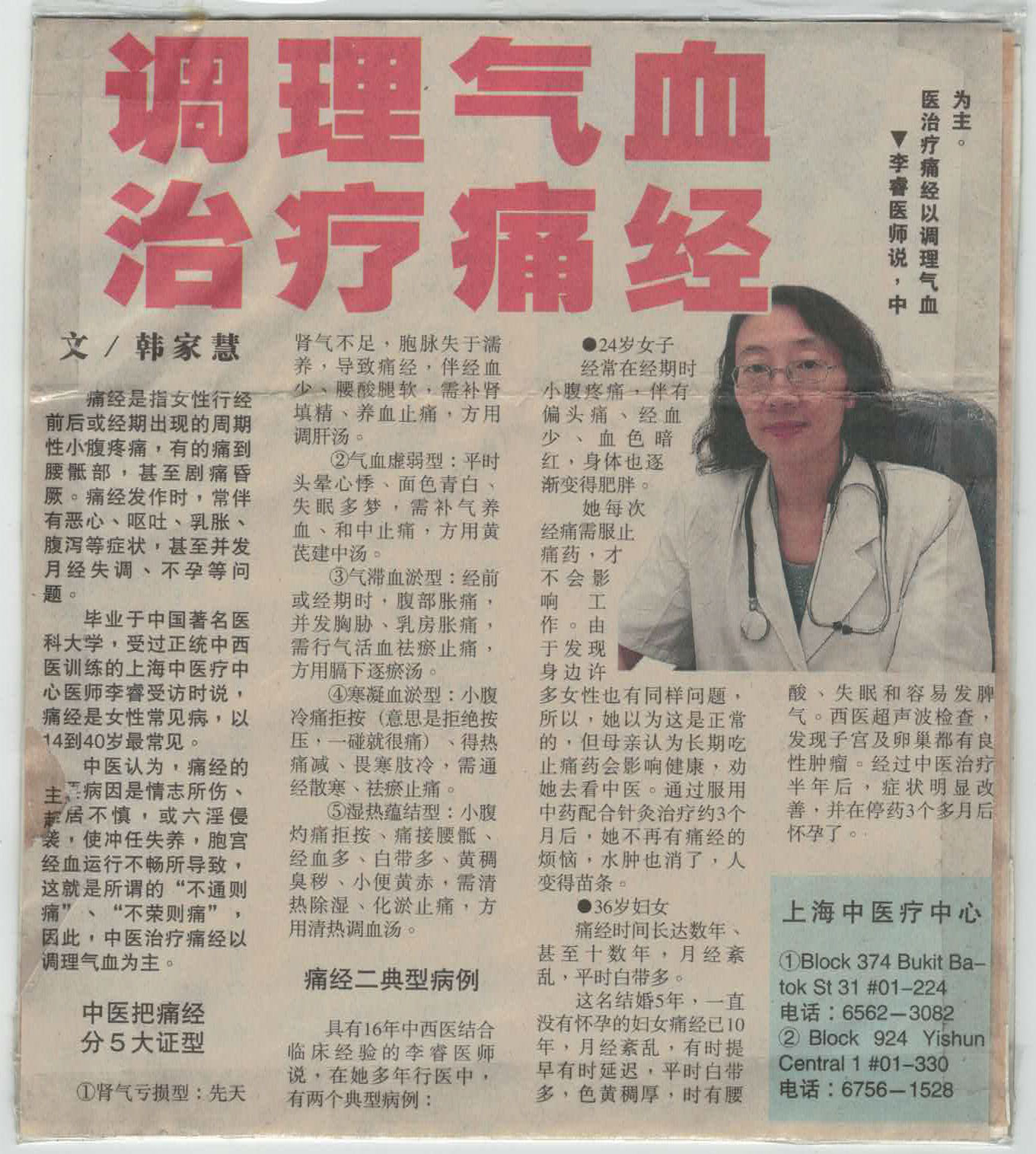 Dr Li Rui points out that dysmenorrhea is often caused by poor circulation of Qi and Blood or malnourishment of the uterus. TCM identifies two main reasons for pain: "Pain due to malnourishment" and "Pain due to blockage." There are five common clinical types:
